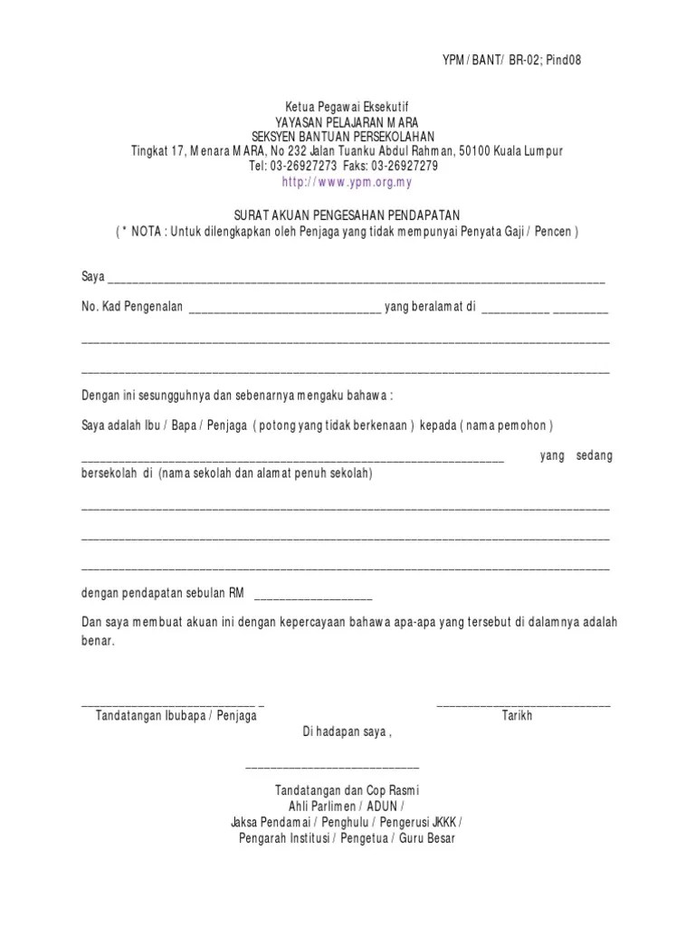 Surat Pengesahan Majikan Potongan Gaji from imgv2-2-f.scribdassets.com Surat tersebut memaparkan maklumat pekerja, jumlah gaji, jawatan, tempoh perkhidmatan dan sebagainya. Contoh surat akuan sumpah tiada slip gaji contoh surat. Senarai ppn/ ppc boleh dirujuk melalui portal ptptn di alamat ptptn.my. Surat pengesahan ibu bapa tanpa penyata gaji. 2 surat kelulusan cuti tanpa gaji oleh jabatan pemohon 3 surat beranak anak surat perakuan bersalin daripada hospital 4 slip gaji terkini 5 alamat no telefon dan emel untuk dihubungi. Save save surat akuan pengesahan pendapatan bekerja sendiri for later. Surat pengesahan status pekerjaan dari majikan Surat pengesagan pendapatan bagi orang yang bekerja sendiri/ tiada majikan by maisarah_azmi_4 in types > letters, surat, and pengesahan pendapatan